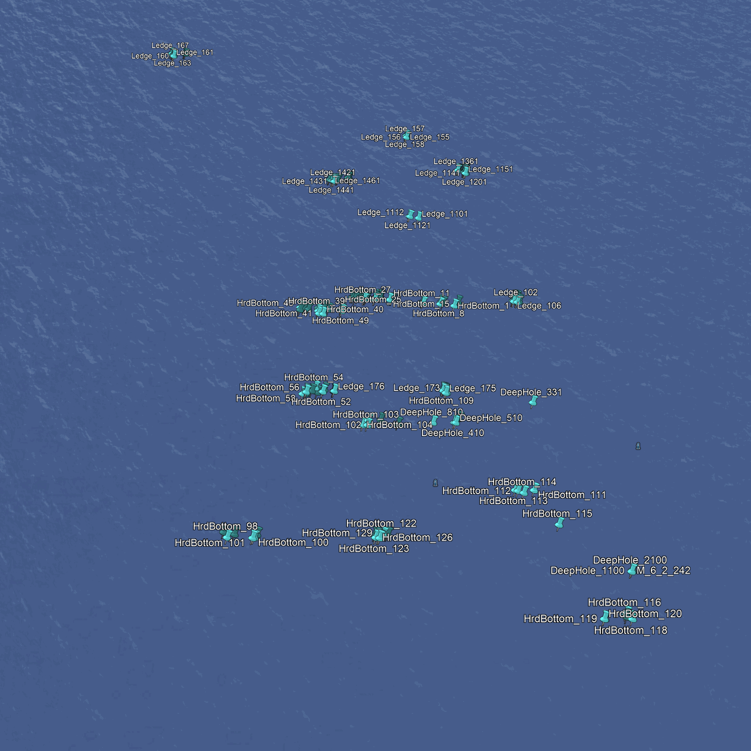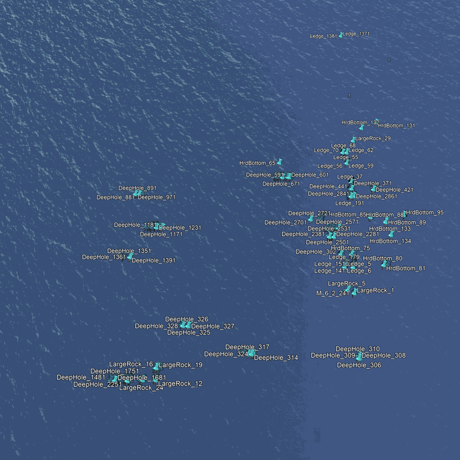 This brand-new package contains 656 spots in deep water from 120 to 500+ feet deep. It includes over 300 deepwater holes, 100+ ledges, 100+ Hard Bottom Numbers, and numerous large rocks ranging in size from 25 feet to over 100 feet in diameter.